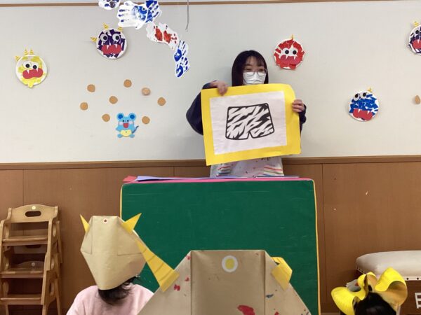誕生会が終わると,なんと保育室に赤鬼と青鬼がやってきました。