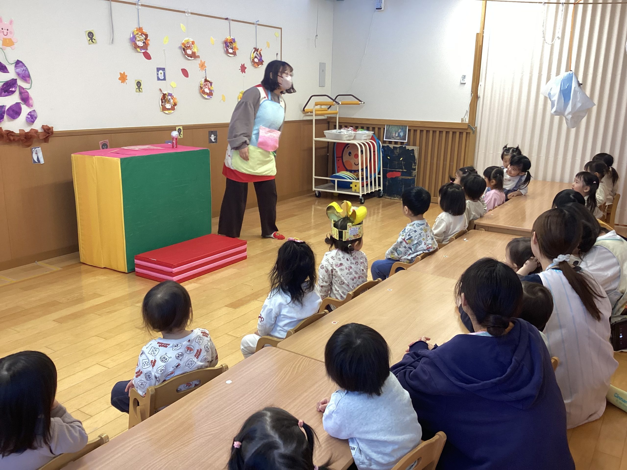 ハロウィンかぼちゃのカチューシャや,プリンセスのドレスなど,様々な仮装をして登園してくれた子どもたちもいました。
