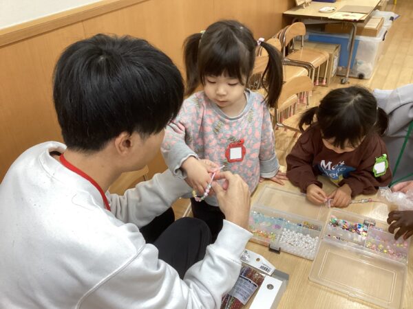 支援室でのうきうきタイムは2日に渡って行いましたが,2回目になると「この前のスライムもう一回するんだ」「ビーズやりたい」と,子どもたちなりに目的をもって取り組む姿が印象的でした。