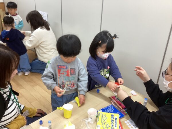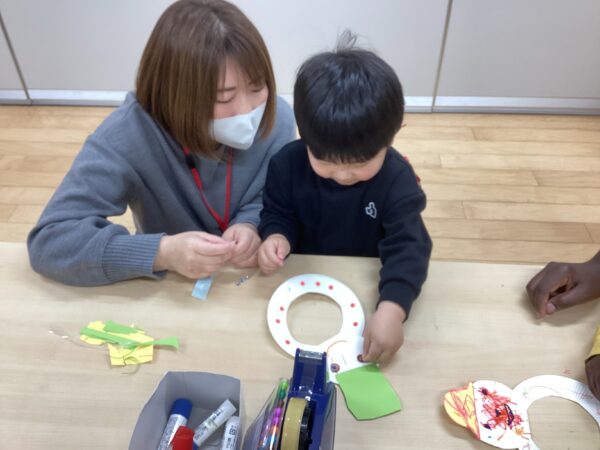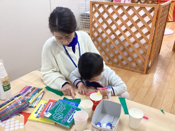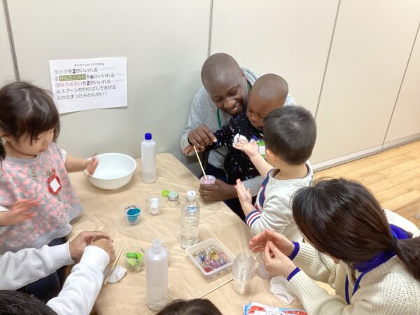 今回は『スライム作り・ビーズ制作・鬼の豆入れ作り』の3つのコーナーを用意しました。