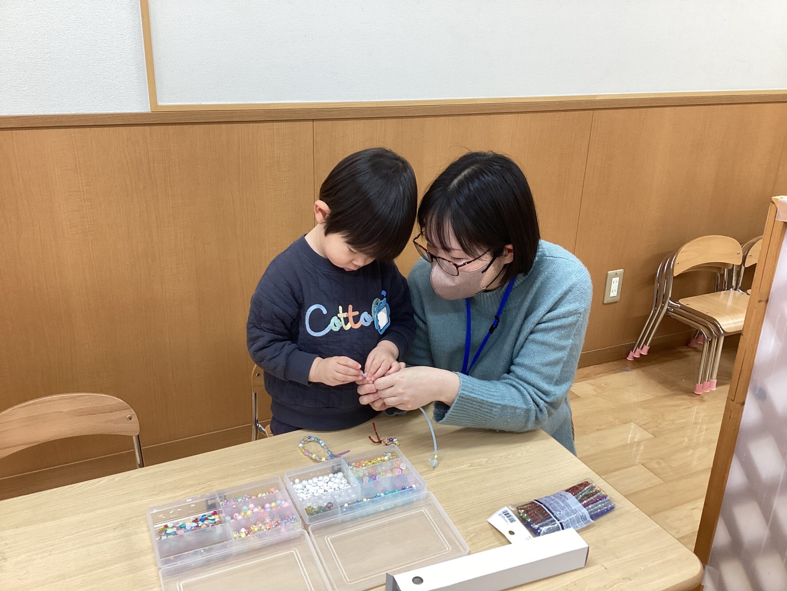 支援室でのうきうきタイムは2日に渡って行いましたが,2回目になると「この前のスライムもう一回するんだ」「ビーズやりたい」と,子どもたちなりに目的をもって取り組む姿が印象的でした。