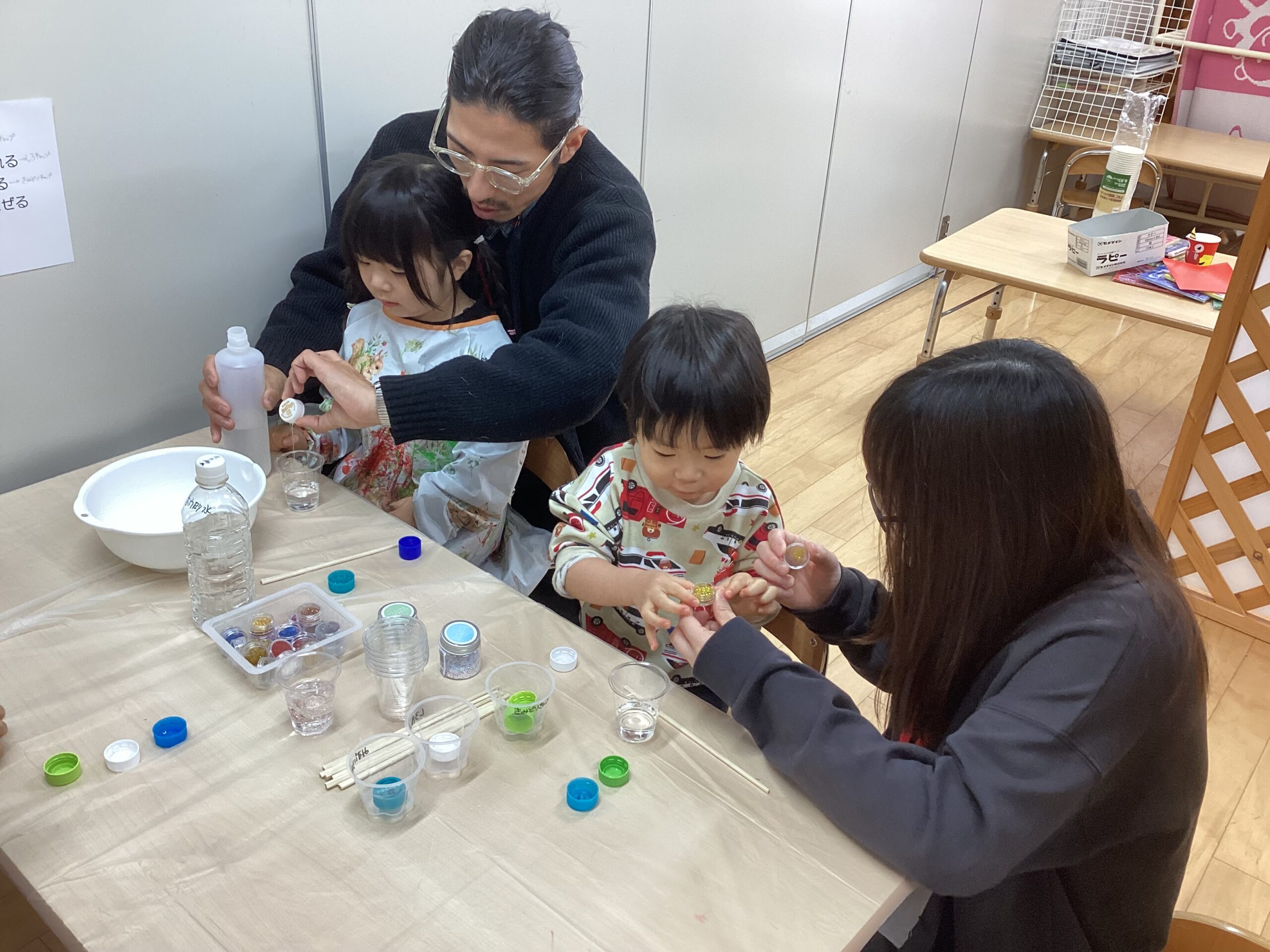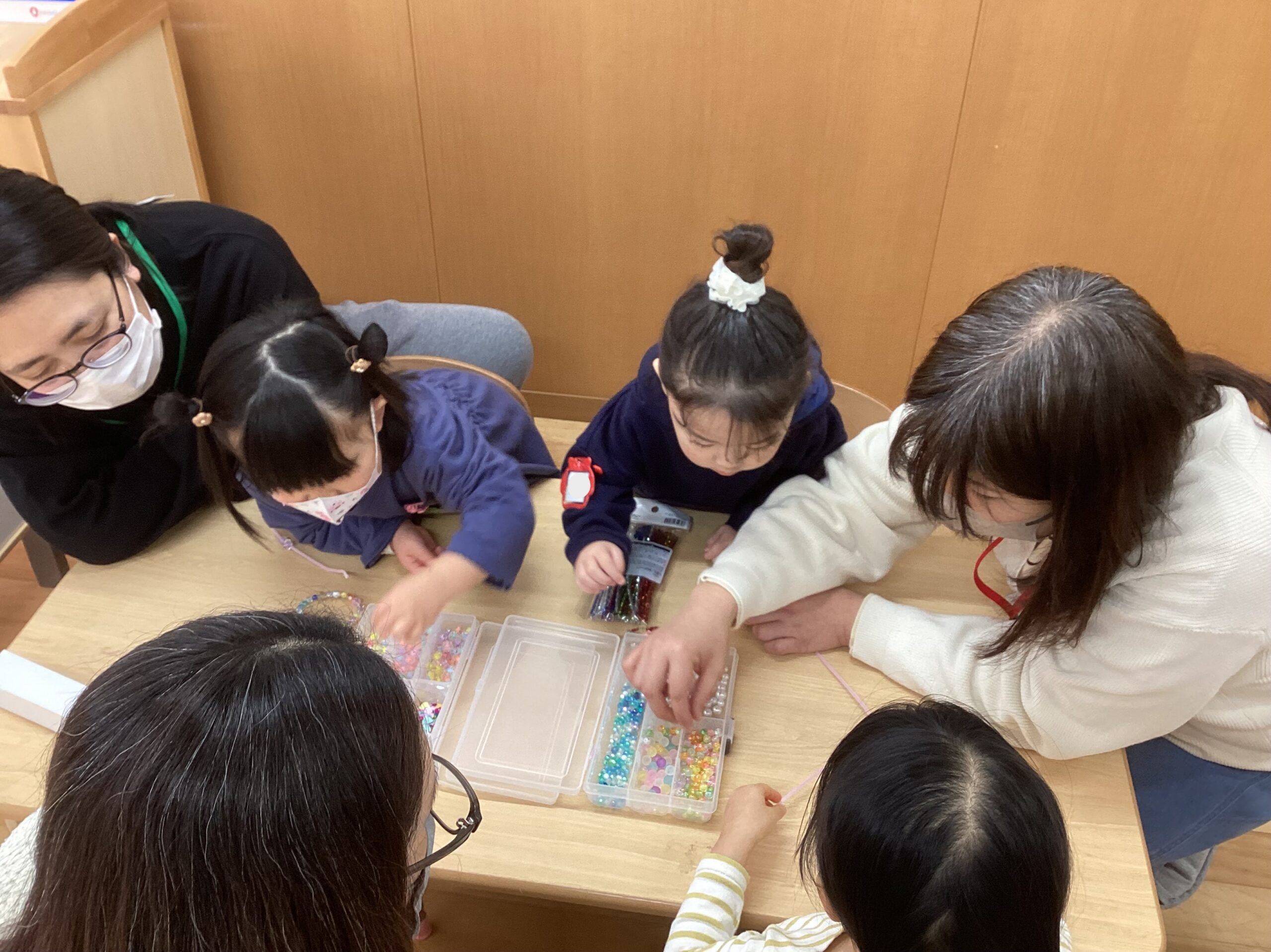 今回は『スライム作り・ビーズ制作・鬼の豆入れ作り』の3つのコーナーを用意しました。