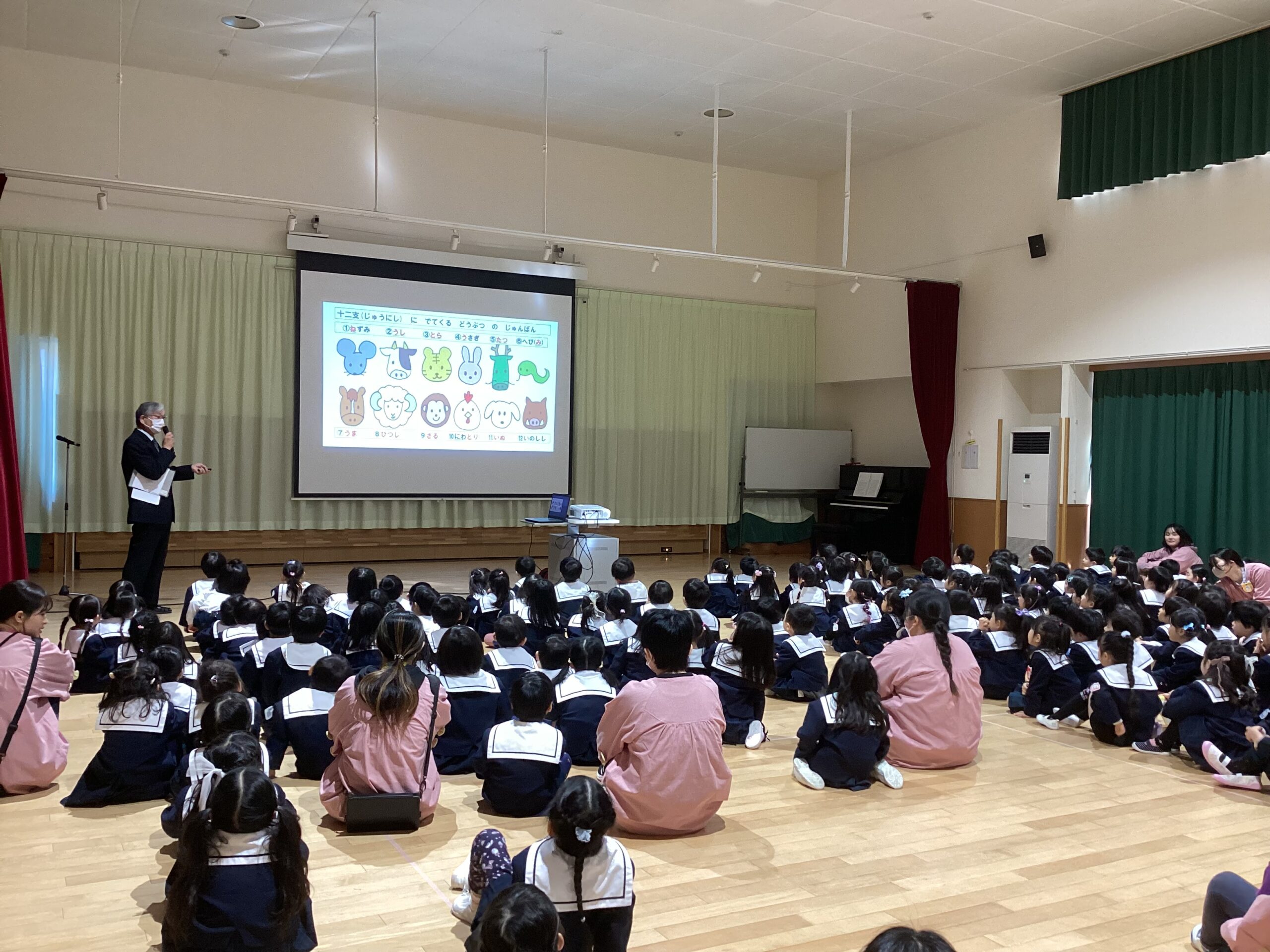 園長先生からは今年の干支である午年についての話や,十二支のなりたちについて話を聞きました。