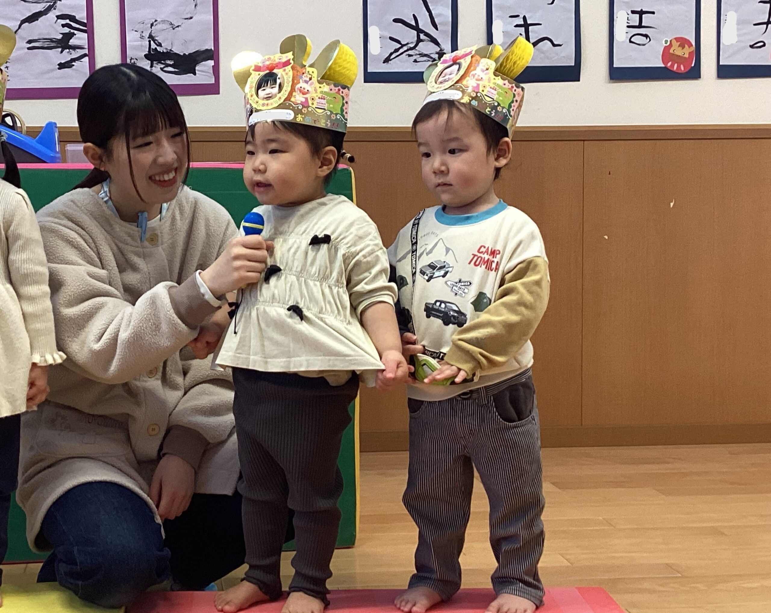 今月の誕生児は1歳児・2歳児ともに2名ずつ,計4名のお友達をお祝いしました。