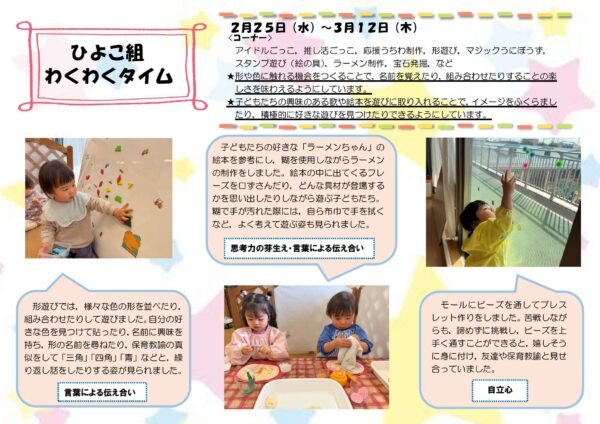 蒲町こども園で行っている活動の様子を,保護者の皆様や地域の方々にもご理解いただけるような記録としてまとめ,配信いたします。是非ご覧ください。